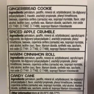 flavored lip balm SPICE APPLE CRUMBLE, GINGERBREAD COOKIE , WARM CINNAMON ROLL , CANDY CANE Perfect for moisturizing lips with a sweet scent. 4 IN EACH PACK