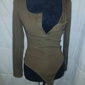 Elevate your style with this chic brown long sleeve bodysuit. Featuring a unique snap button design, it's perfect for any occasion.