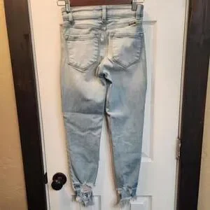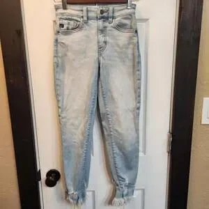 KanCan Women's Light Wash Skinny Jeans with Frayed Hem- 0/23