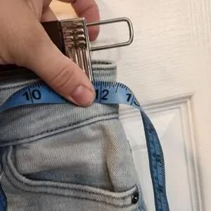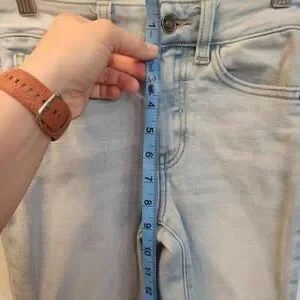 Women's skinny jeans in a light wash denim.