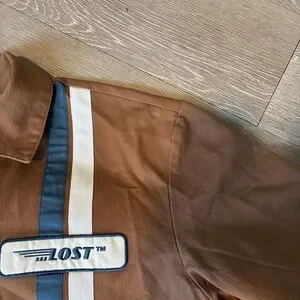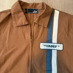 LOST skater boy mechanic zip up shirt shacket Cotton shell jacket brown neutral