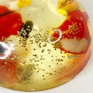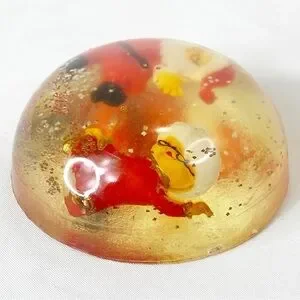 Super cute vintage paperweight of Santa and Mrs. Claus in a flat bottom paperweight. The acrylic has some yellowing.