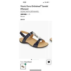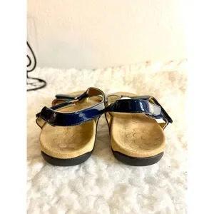 Vionic Farra Orthaheel Navy Patent Leather Sandals Women Size 8