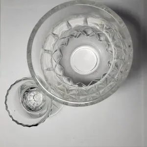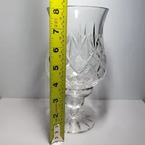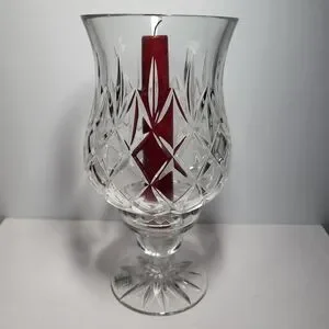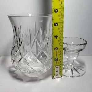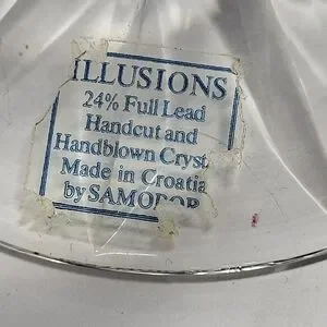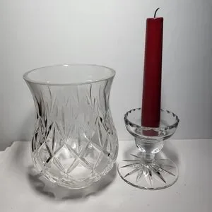 This is a vintage, 2-piece lead crystal hurricane candle holder in the "Illusions" pattern by Samobor, a renowned glassmaker from Croatia. This classic design is part of the discontinued "Illusions" pattern by Samobor which makes it highly sought after by collectors. Each piece of the set is hand-blown and then hand-cut from high-quality 24% full lead crystal and consists of a tapered hurricane shade and a separate base featuring an intricate criss-cross and fan-cut design. It's perfect for holding a tapered candle, tealight, or votive candle and creates a warm, inviting atmosphere in any room. It's in excellent conditon with no chips or cracks. I'll include the candle seen in the pics for free if you'd like to have it. 👍🏻