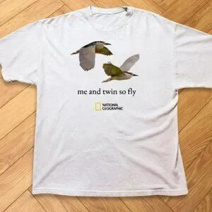 National Geographic Birds “Me and Twin So Fly” Tee Gildan 5000 NWT