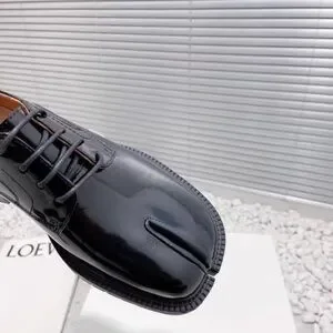 Sleek black oxfords with a glossy finish. Distinctive split-toe style. Ideal for sophisticated occasions.