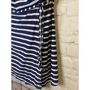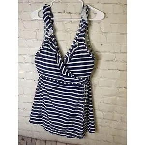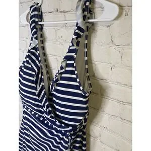 Lands End Tankini Top Halter Molded Cups Striped Navy Blue White 6