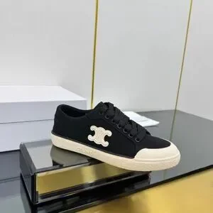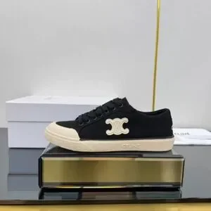 Stylish Celine sneakers with a black body. Cream logo accent on the side. Ideal for everyday style.
