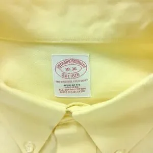 Brooks Brothers Mens 18-36 Yellow Button Down Dress Shirt Non Iron Cotton Brooks Brothers Mens 18-36 Yellow Button Down Dress Shirt Non Iron Cotton in soft pastel yellow featuring classic button-down collar and chest pocket. Made from 100% Supima cotton, regular fit, non-iron finish for easy care. Tagged size 18-36 (neck 18, sleeve 36).