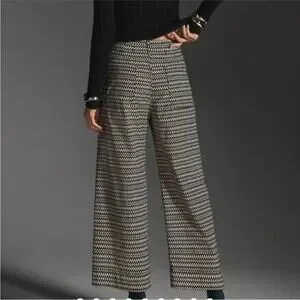 Anthropologie Maeve Colette Cropped Wide Leg Pants | Black White Print | SZ 33T