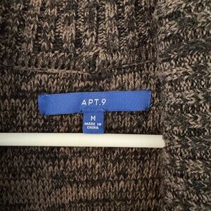 APT 9 Marled Brown Open Front Cardigan Sweater Shawl Collar Pockets Size M