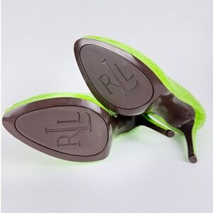 Keywords: Lauren Ralph Lauren, Green Pumps, Snakeskin Heels, Pointed Toe Heels, Stiletto Heels, Embossed Pumps, Designer Heels, Womens Shoes, Party Heels, Cocktail Attire, Formal Shoes, Fashion Heels