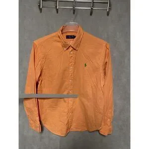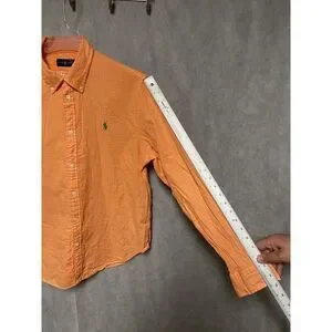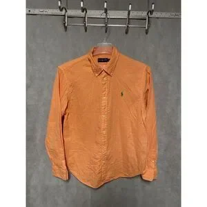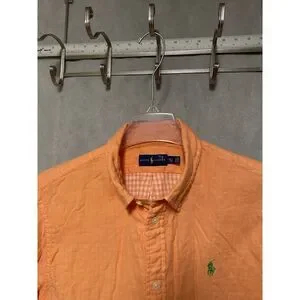 It is a Ralph Lauren Men Shirt XL Orange Cotton Casual Button Up Green Pony Check Lining