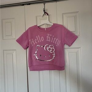 Hello Kitty Pink Short Sleeve Metallic Graphic Sweatshirt