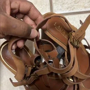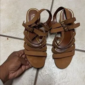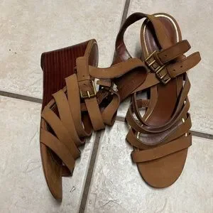 Lauren Ralph Lauren Aleigh Sandal Wedge Brown Open Toe Strappy 8.5b