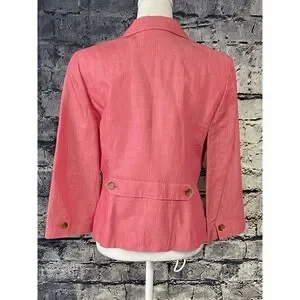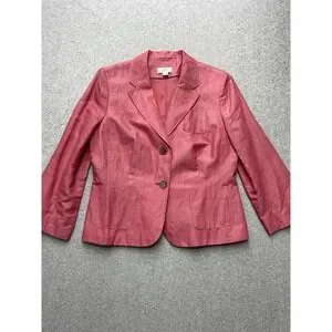 Loft Womens Blazer Jacket Medium Pink Linen Blend Business Casual Vintage Look