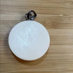 Elegant white moon face pendant. Unique design with serene expression.