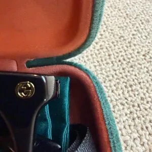 Chic and timeless authentic Gucci sunglasses featuring an oversized black frame with signature Gucci details. A classic, flattering shape that elevates any outfit while offering designer style and sun protection.