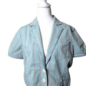 Robert Graham Women's Large Striped 3 Button Closure Top Blouse Short Sleeve