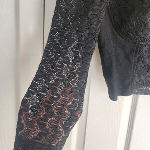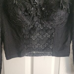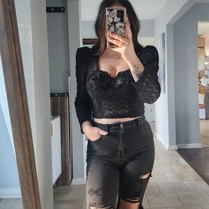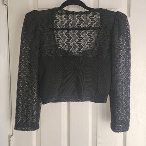 Vintage Black Lace Crop Top with 3/4 Lace Sleeves | Large | Whimsigoth