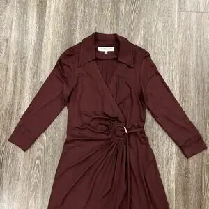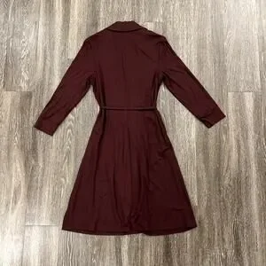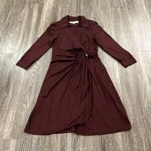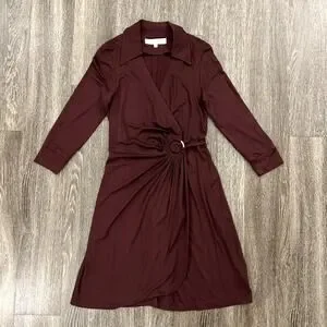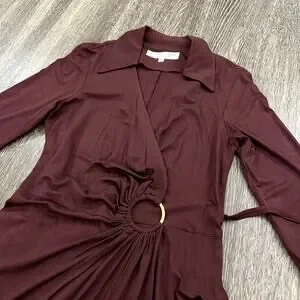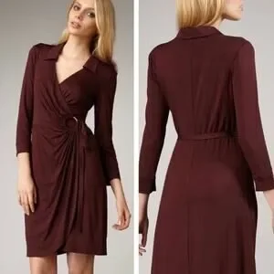 EUC Trina Turk Mahalo Burgundy Jersey Wrap Dress Size 8 Long Sleeve Knee Length