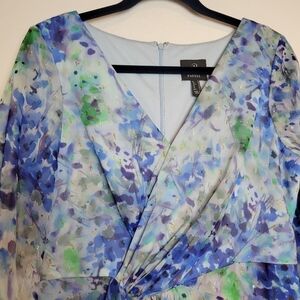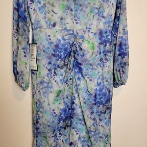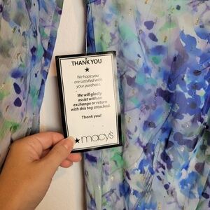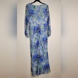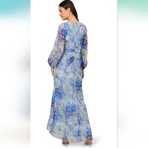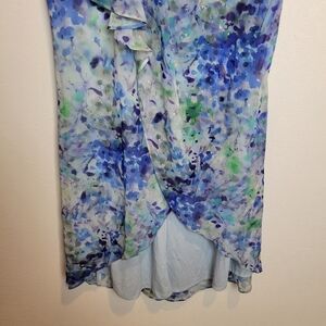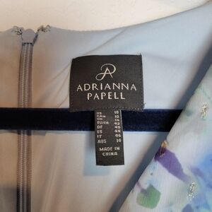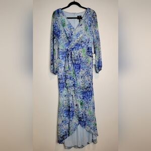 NWT Adrianna Papell Abstract Floral Metallic Chiffon Blue High-Low Dress Size 10