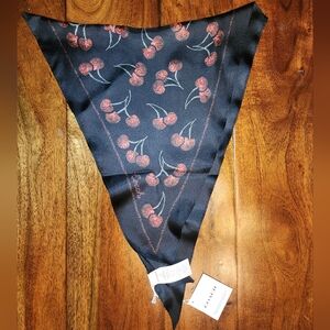 Authentic Coach Silk Diamond Black Scarf with Red Cherry Print Design NWT Cute!