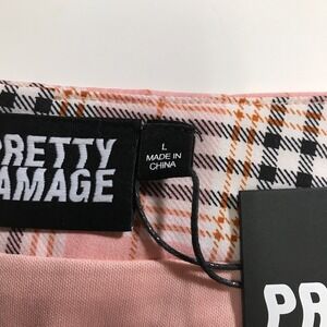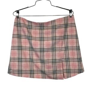 Pretty Damage Womens Size L Pink Plaid Mini Skirt High Waist Front Slit S1079