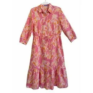 J.McLaughlin Foley Linen-Blend Dress Pink Trinidad Abstract Medium Beachy Resort