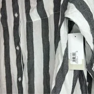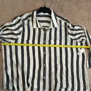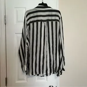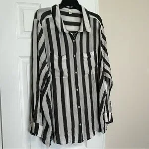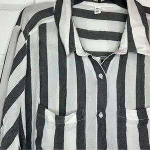 BP Women’s Blouse 4X Button Black and White Striped Button Down Viscose NWT