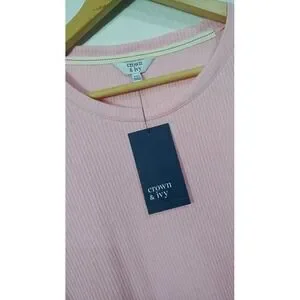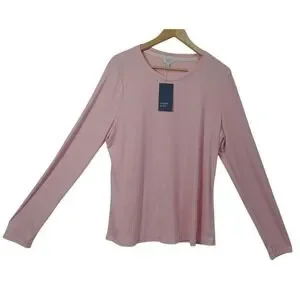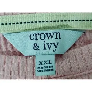 Crown & Ivy Pink Ribbed Long Sleeve Size XXL Crew Neck Pullover Shirt Top Casual