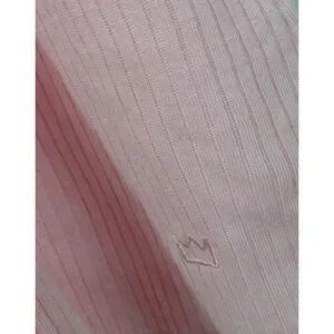 A women's pink ribbed long-sleeve crew neck pullover shirt. This top offers a comfortable and classic silhouette perfect for layering or wearing on its own. The ribbed texture adds subtle visual interest and a touch of casual style.