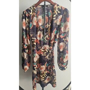 Lulus So Splendid Navy Blue Floral Satin Long Sleeve Wrap Dress