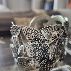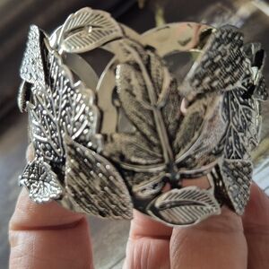 Silver Tone Bracelet With Leaves Motif