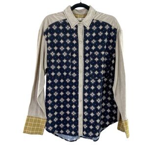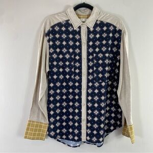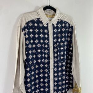 Free People We The Free Women’s Navy and Beige Patterned Button Down Shirt M