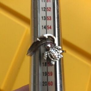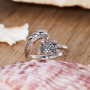 Sea Turtle and Ocean Wave Silver Tone Ring Size is Adjustable