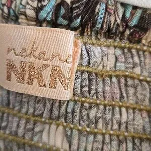 These are so much prettier in person.Tge colors are green, blue and pink Wide ruffle leg seen everywhere this season. Stretch beaded waist. Gorgeous and flowy.