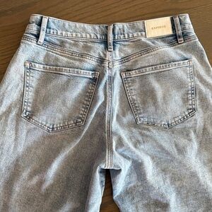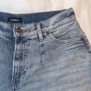 Express High Waisted Light Wash Pleated Wide Leg Jeans | 4R