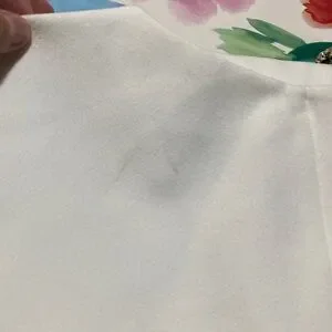FLAW: On the back of the dress near the shoulder has 2 faint spots. I think a wash could take it off. Not super noticeable.