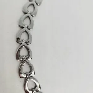 Stainless Steel Wishbone Heart Tennis Link Bracelet 8 Inch Silver Tone Unisex