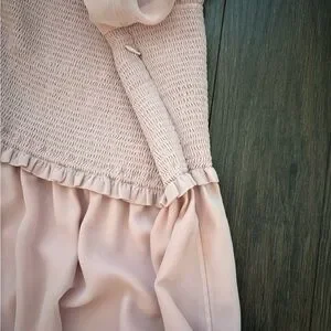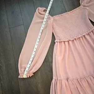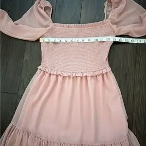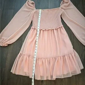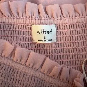 Aritzia Wilfred Tempest Mini Dress Poetic Pink Smocked Long Sleeve Ruffle Hem Small