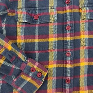 Patagonia Worn Wear S Fjord Flannel Shirt Organic Cotton Navy Gold Burgundy