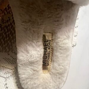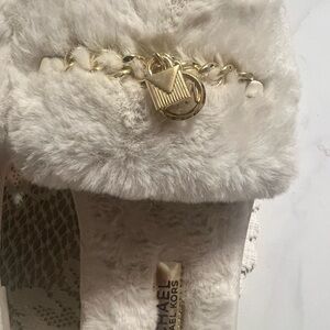NWOT Luxurious cream slippers with Michael Kors, gold chain detail. Perfect for comfort and style. I got them for my daughter for her wedding and they were too small. They worn in the house one time.