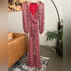 Very good condition Nicholas Long Sleeve Wrap Dress in red blossom