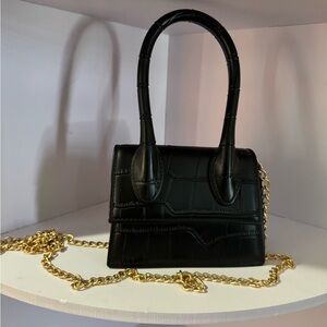 Mini purse! This chic black croc-embossed handbag is perfect for any occasion. Its sleek design adds a touch of sophistication to your outfit. OPEN TO OFFERS
