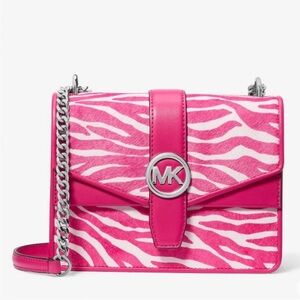 NWT Michael Kors MK Greenwich Pink & White Zebra Print Crossbody Shoulder Bag