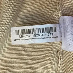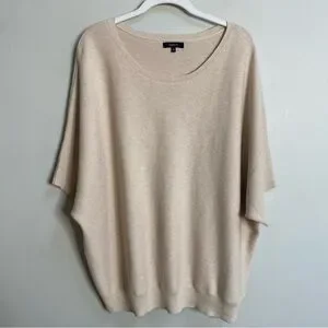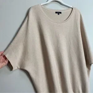 Quince Heather Oatmeal Lightweight Cotton Cashmere Link-Stitch Dolman Sweater XL