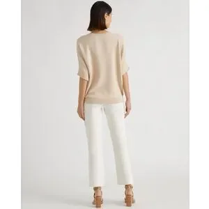 The sweater that bridges seasons. With its relaxed fit and unique link-stitch texture, this cotton-cashmere blend layers easily over button-downs or tucks into trousers. Soft, versatile, and polished enough to carry you through fall. Knit construction. Neutral cream oatmeal color. Scoop neck. Short dolman sleeves. Pullover.