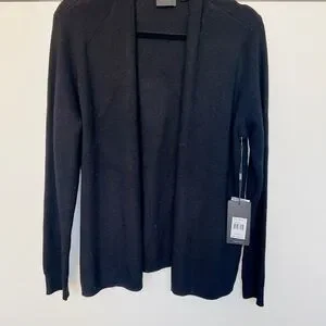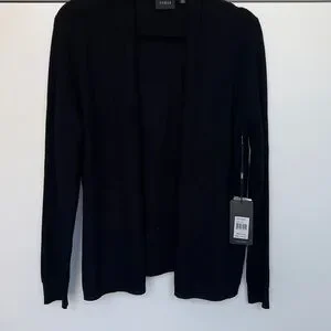 Cyrus women’s Sleek open-front cardigan in solid black.