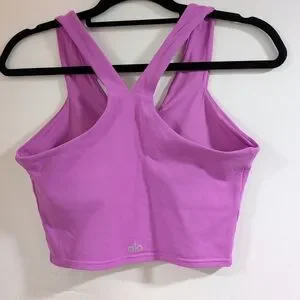 Vibrant pink sports bra by ALO Yoga. Ideal for yoga and active wear.